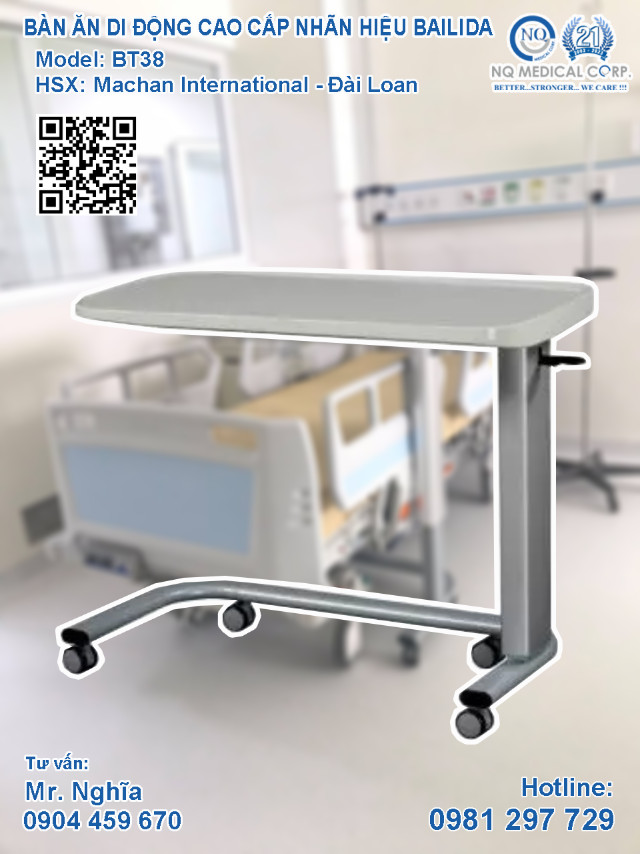 Tham khảo ngay ưu điểm vượt trội của các loại bàn ăn di động / bàn ăn y khoa / bàn ăn tại giường cao cấp nhãn hiệu BAILIDA tại CÔNG TY CỔ PHẦN Y KHOA NQ